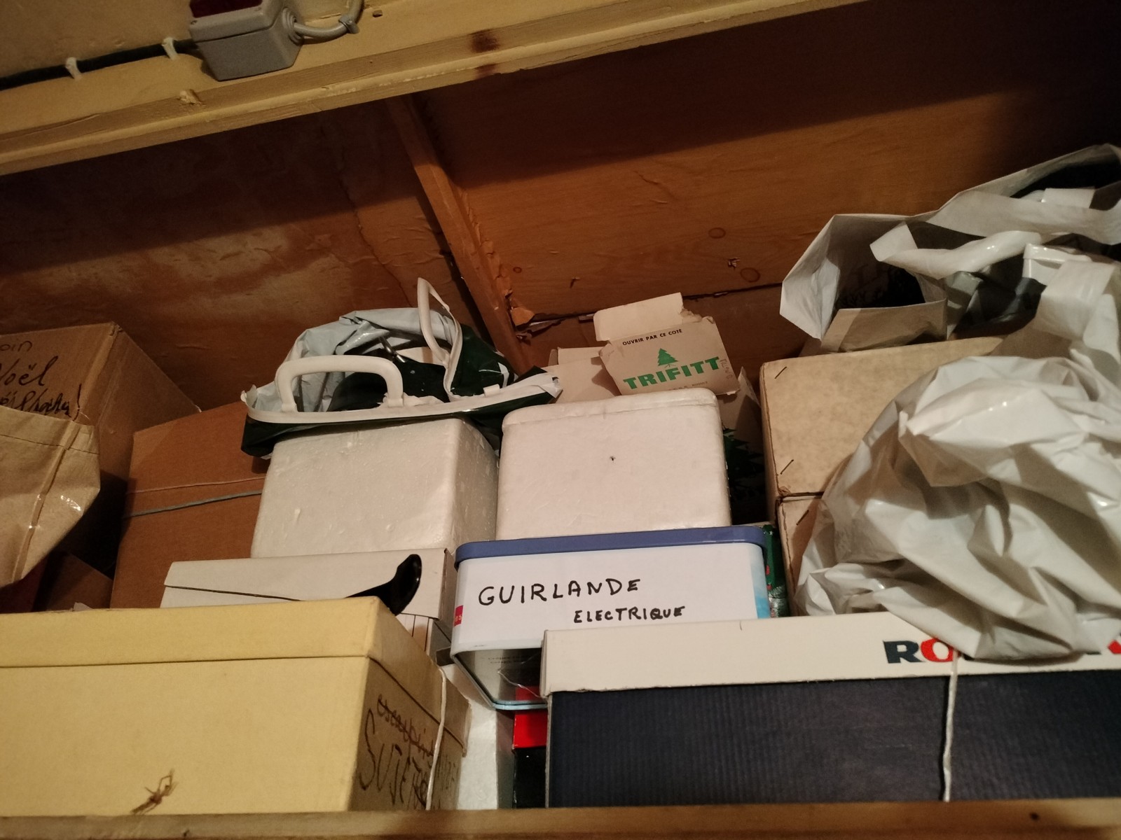 Crèche et affaires de noël(haut du placard gauche)