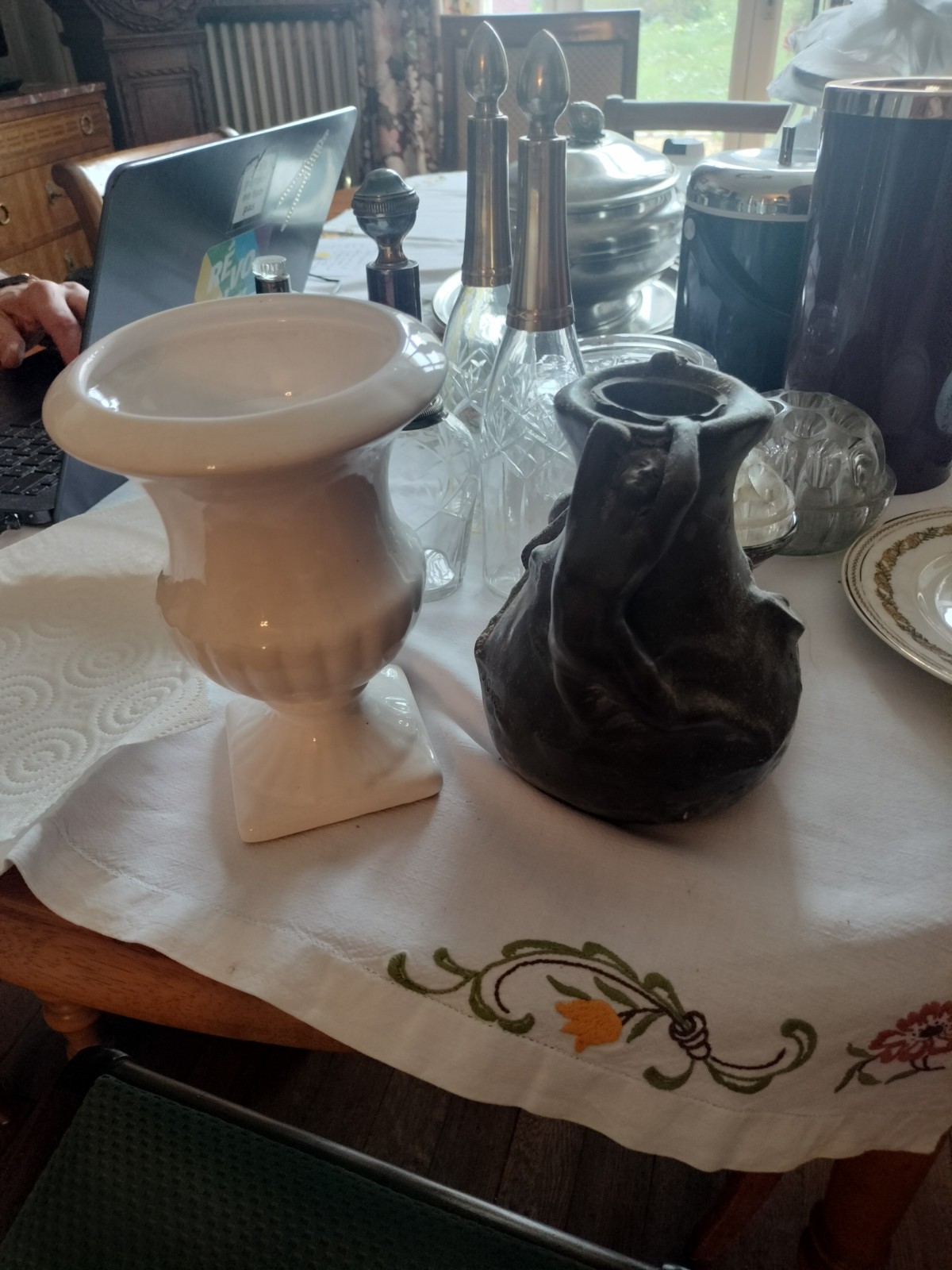 Un vase en bronze et un vase en porcelaine